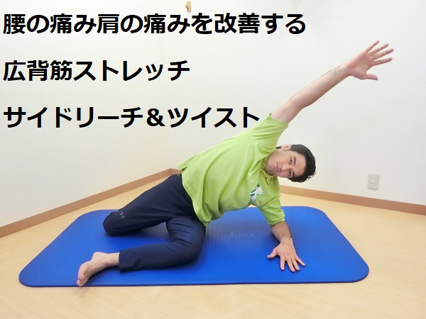 今回は腰の痛みや肩の痛みを改善するストレッチ、サイドリーチ&ツイストを紹介します。